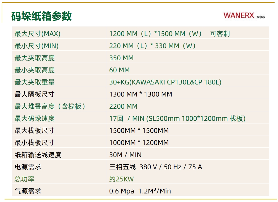 介紹:平板紙箱自動碼垛系統(tǒng)是萬爾芯的主打產(chǎn)品,其可根據(jù)客戶的場地需求、產(chǎn)能需求、及其他需求量身定制。 碼垛系統(tǒng)一般是由:機器人、疊包機、供棧機、鋪隔板機和四面拍齊機組成。其系統(tǒng)優(yōu)勢在于疊包和碼垛綜合到16-18次/分鐘。 產(chǎn)品別稱:紙箱碼垛機器人、紙箱碼垛機器、紙箱碼垛設備、全自動紙箱碼垛機、機器人紙箱碼垛、自動流水線紙箱碼垛機