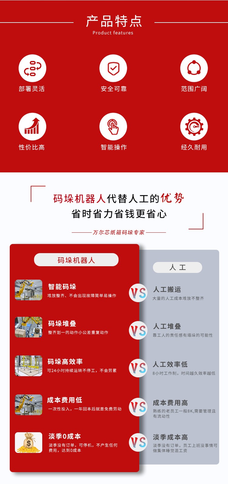 介紹:協(xié)作碼垛機(jī)器人是智能機(jī)器人,與人類工作人員緊密合作,提高生產(chǎn)效率、靈活適應(yīng)不同任務(wù)。配備傳感器,能自主學(xué)習(xí)、感知環(huán)境。廣泛應(yīng)用于紙箱、醫(yī)藥、食品等多個(gè)行業(yè)生產(chǎn)線。革命性提高生產(chǎn)線智能化程度,為工作人員創(chuàng)造更的工作環(huán)境。